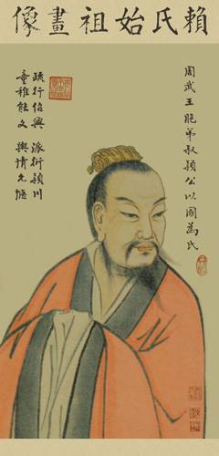 叔颖公是轩辕帝第廿九世的玄孙,文王第十九子,即武王的弟弟,当时因为纣王无道,而武王起而吊民伐罪,逐命令叔颖公率领大军联合诸侯前往征讨,功成以后退居河南省赖地,武王顾念其建立之功劳就赐给子爵的尊位,并就赖地封为赖国。